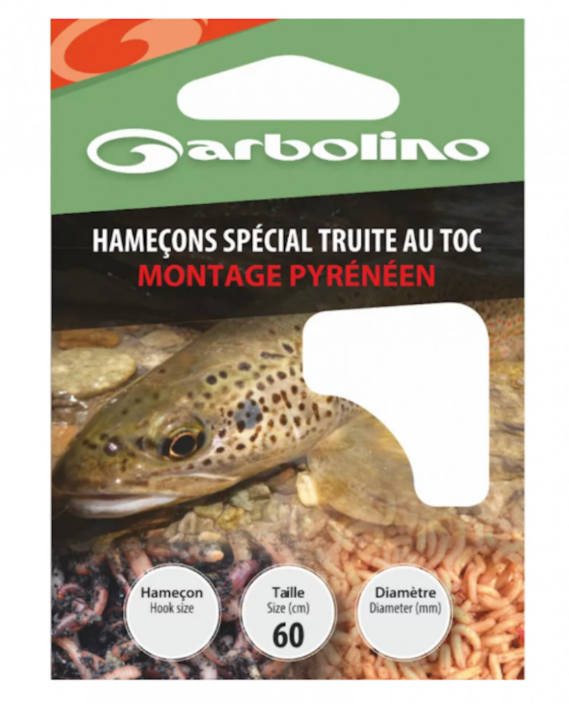 Garbolino Spezial-Forellenhaken / Pyrenäen-Rig 16 mit Plättchen, mit Widerhaken, Monofil vorgebunden, 10 Stk.