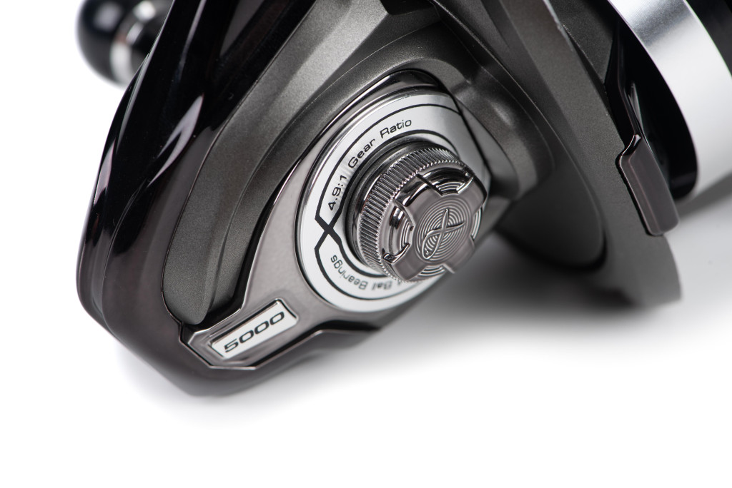 Die Rolle ist mit einem ultraleichten Magnesiumgehäuse ausgestattet, das das Gewicht erheblich reduziert, ohne Kompromisse bei der Haltbarkeit einzugehen. Das 5000er Modell wiegt nur 408 Gramm und ist dennoch stabil und robust. Der Schneckengetriebeantrieb und die langsame Hubtechnologie sorgen für eine hervorragende Schnurverlegung, die für präzise und weite Würfe unerlässlich ist. Das Spulendesign ermöglicht es, dass selbst bei der größten Rolle der Wurf leicht erreichbar und kontrollierbar ist.
