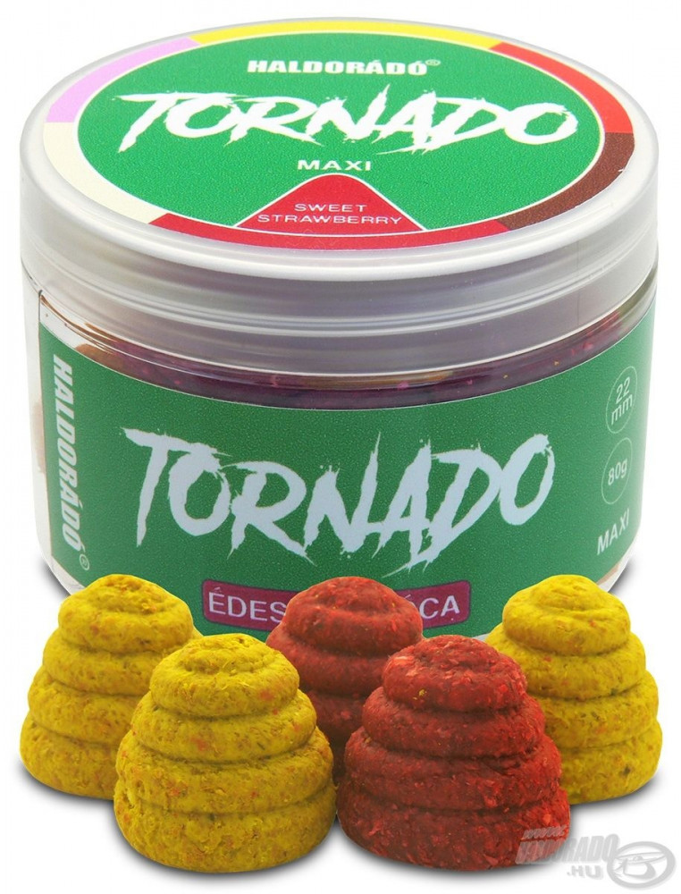 Das TORNADO MAXI hat die spezielle Form der TORNADO Köder beibehalten, ist aber im Gegensatz zu seinen Vorgängern ein sinkender, löslicher Köder. Durch seine vergrößerte Größe von 22 mm wurde es für selektive Karpfenangler optimiert, kann aber auch für Feederangler, die auf kapitale Fische aus sind, eine Lösung sein, wenn es darum geht, die Großen auszusortieren. Während des Auflösens gibt es kontinuierlich Geschmacks- und Duftstoffe ab und weckt so schnell die Aufmerksamkeit der Fische.