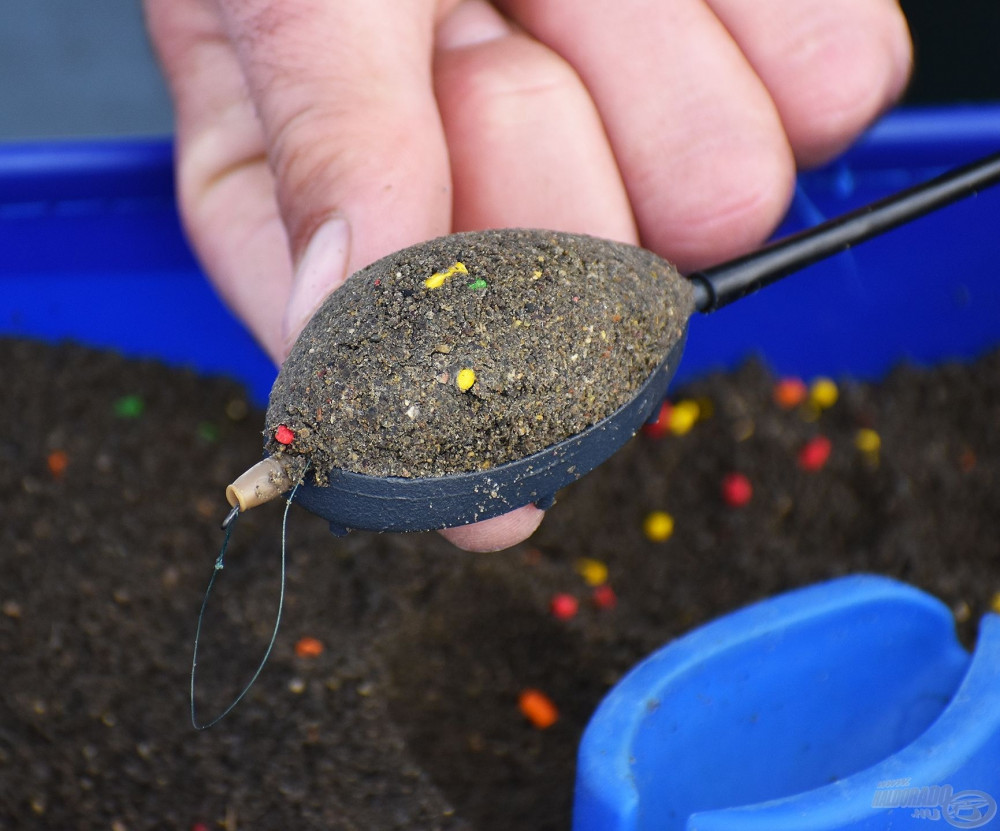 - Wenn Sie in tieferem (mehr als 2 Meter tiefen) Wasser angeln oder lange (bis zu 15 Minuten) auf Bisse warten müssen, fügen Sie noch etwas, maximal 0,5 dl Wasser hinzu, damit das Futter klebriger wird. Sie werden spüren, wie seidig und gut die Konsistenz des Futters ist, die es den ganzen Tag über behält. Es ist ein leicht zu handhabendes, gut haftendes, aber dennoch schnell lösliches und trübendes Futter, genau wie ein professioneller Method Mix!