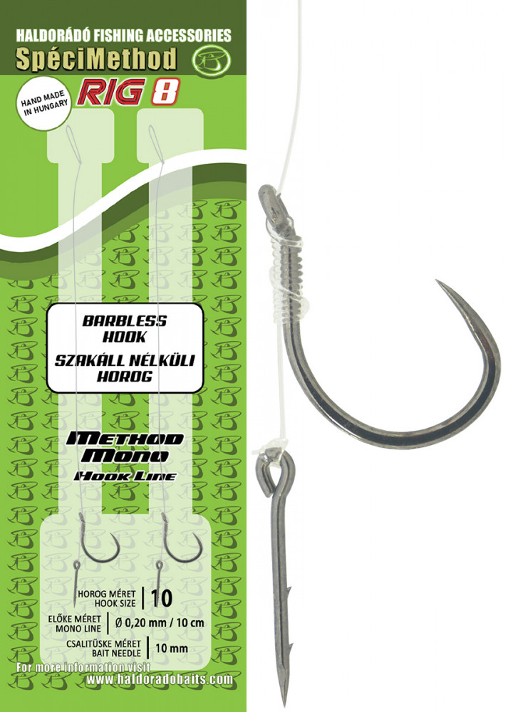 Haldorádó SpéciMethod Rig8 Mono 10 Vorgebundener Monofil-Haken mit Öhr, widerhakenlos
