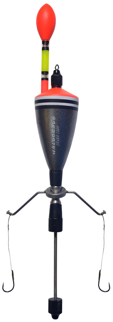 Der Haldorádó Oberflächen-Silberkarpfen-Schwimmer mit Tablette ist eine bärenstarke, hochbelastbare Schwimmer-Montage, die speziell für das gezielte Angeln auf Weiß- und Marmorkarpfen entwickelt wurde und zum Fang von Fischen dient, die nahe an der Wasseroberfläche schwimmen. Gebrauchsanweisung: - Die Inbetriebnahme des Schwimmers ist sehr einfach, man muss lediglich die Hauptschnur in den Wirbel an der Oberseite binden und dann die Sicherungsschraube am unteren Teil des Stahlstabs lösen. So wird das Anbringen der Tablette am Stahlstab ermöglicht. Ist dies geschehen, muss die Schraube wieder fest angezogen werden. - Es empfiehlt sich, Technopuffs an die Haken zu stecken, um sie leichter zu machen. Diese sollten genau so groß sein, dass sie die Haken „schwerelos“ machen, aber keinesfalls vom Futterkorb abheben. - Der Schwimmer ist mit 2 Haken ausgestattet, dies ist jedoch nicht in allen Gewässern erlaubt, bitte informieren Sie sich vor Beginn des Angelns über die örtlichen Vorschriften! - Die Verwendung des Schwimmers erfordert aufgrund der 2 nadelscharfen Haken äußerste Vorsicht, damit sie nicht in die Hand geraten. Kinder dürfen sie nur unter Aufsicht von Erwachsenen verwenden!
