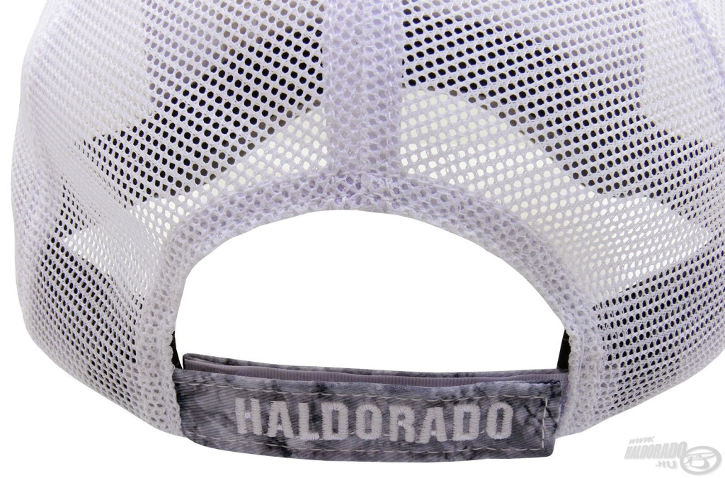 Auf der Vorderseite der Kappe befindet sich ein sorgfältig gesticktes Haldorádó-Logo und auf der Rückseite ein Haldorádó-Schriftzug. Die Kopfgröße kann mit Hilfe eines Klettverschlusses beliebig eingestellt werden.