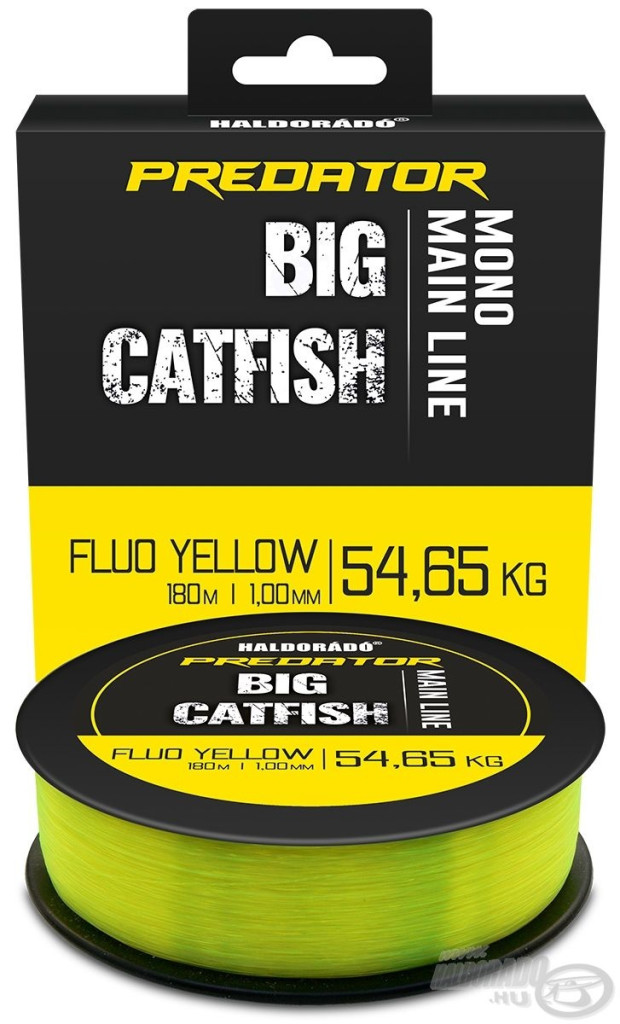 Der Packungsinhalt: Haldorádó Predator Catfish Line Mono Fluo Yellow 1,00mm 180m Monofile Hauptschnur