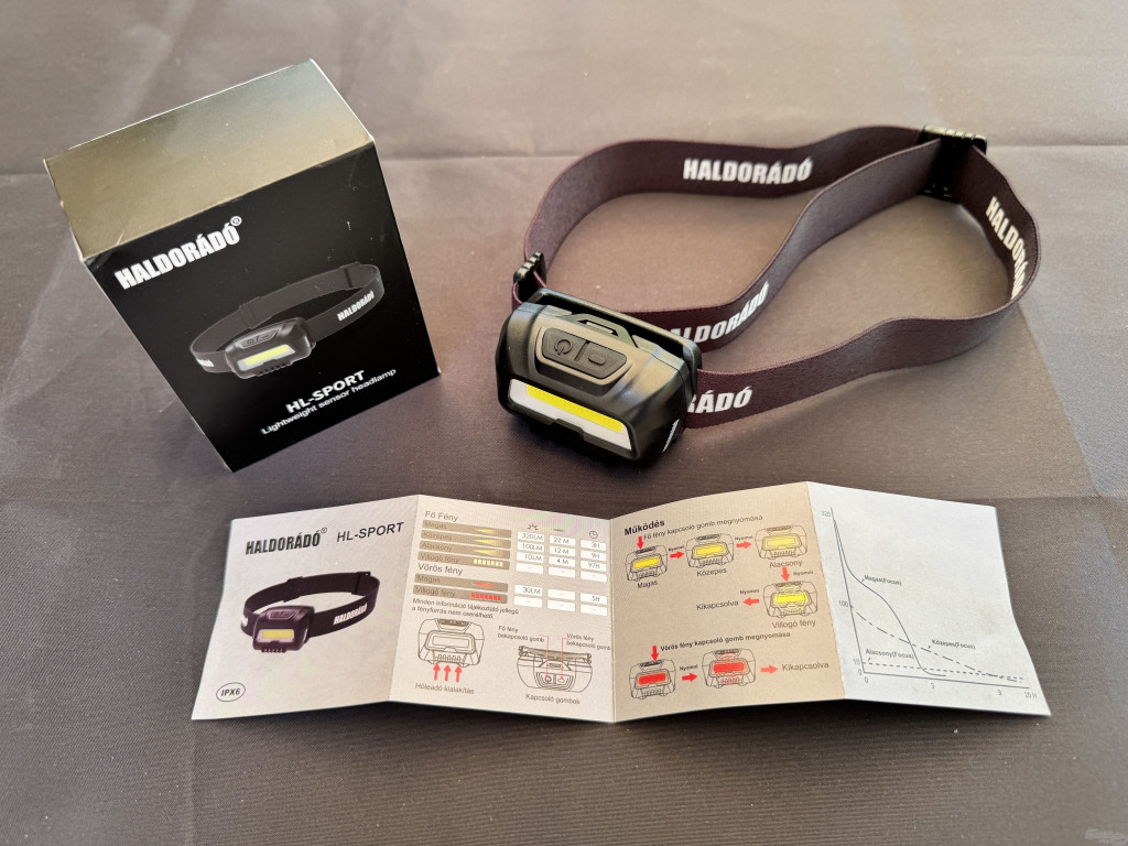 Der Packungsinhalt:Haldorádó HL-Sport Stirnlampe mit Geschenk-Batterien