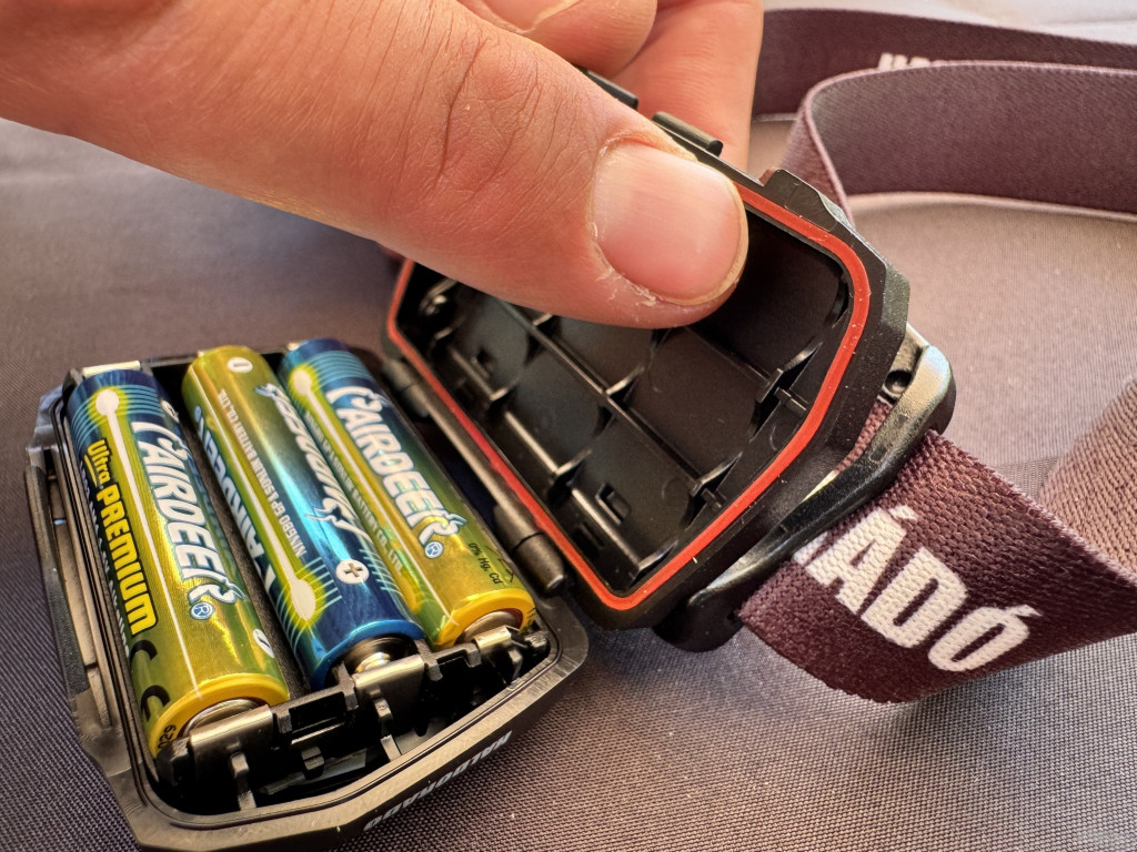Das Gehäuse der Stirnlampe besteht aus strapazierfähigem, leichtem Kunststoff, der Outdoor-Bedingungen standhält und die elektronischen Komponenten schützt. Das gummierte Band sorgt für angenehmen Tragekomfort, während das leichte Batteriefach kompakt und einfach zu handhaben ist. Die Stirnlampe wird mit 3 AAA-Batterien betrieben, die als Teil des Geschenkpakets geliefert werden und somit sofort einsatzbereit ist.