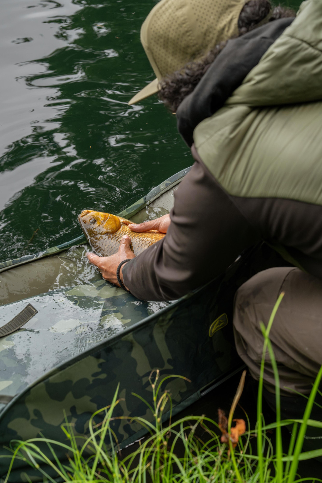 Wenn ein kapitaler Karpfen an Land gebracht wird, ist die Sicherheit und schonende Behandlung des Fisches von größter Bedeutung. Oft stehen wir vor dem Problem, dass wir nach einem anstrengenden, erfolgreichen Biss keine geeigneten Mittel haben, um den gefangenen Karpfen sicher abzulegen und den Haken zu lösen. Die Korum Camo Fast Mat Karpfenmatte wurde genau für diesen Zweck entwickelt, damit der gefangene Fisch nach dem anstrengenden Kampf beim Lösen des Hakens und Fotografieren maximalen Komfort und Sicherheit genießt.