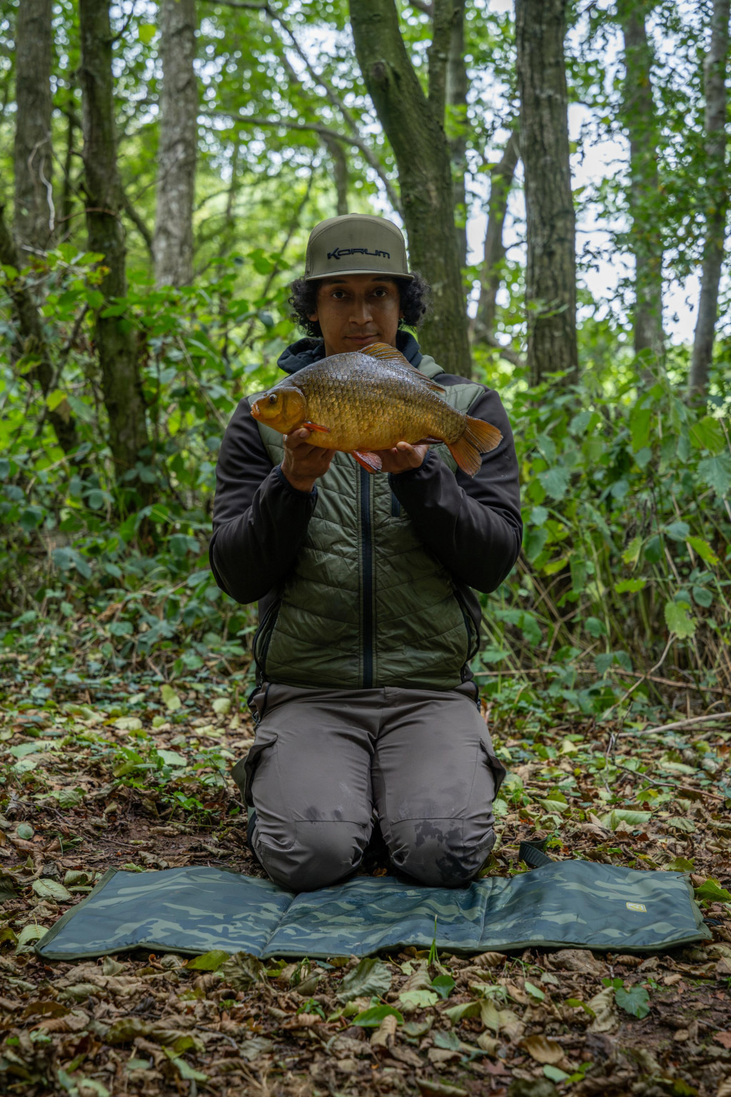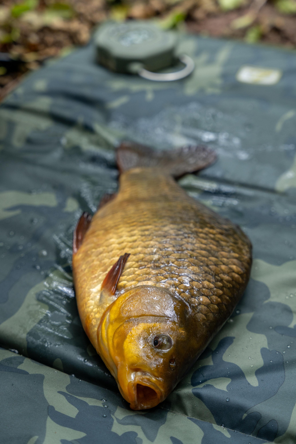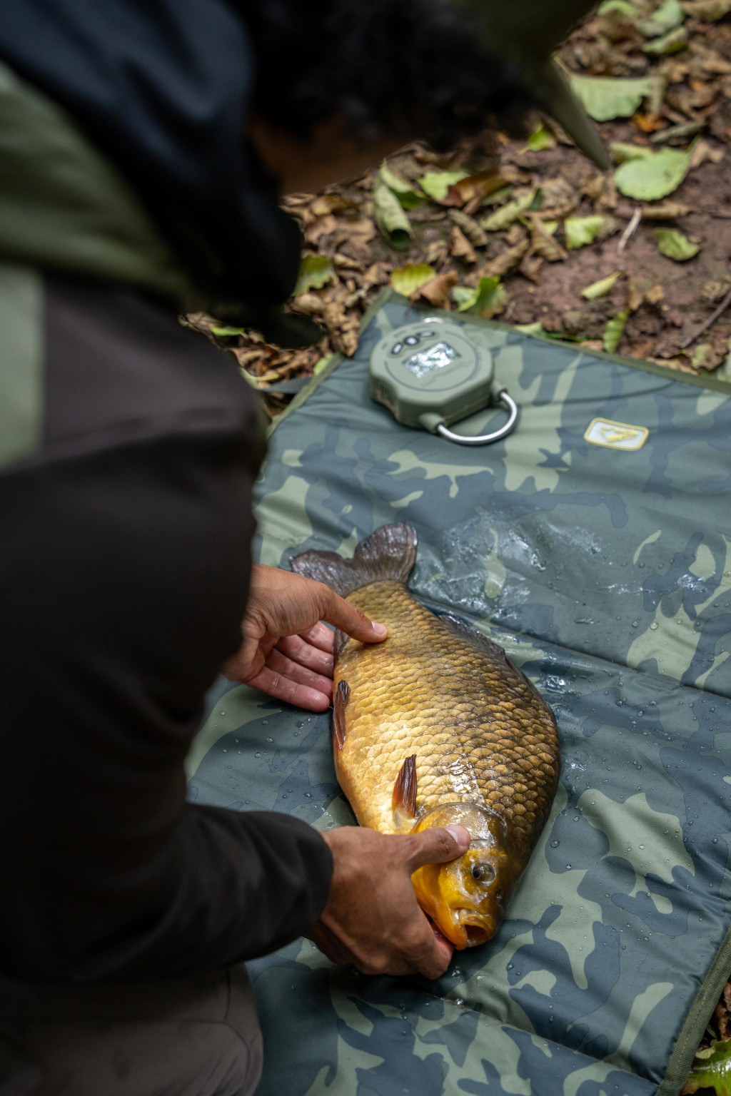 Wenn ein kapitaler Karpfen an Land gebracht wird, ist das Letzte, was man möchte, dass der Fisch am Ufer verletzt wird. Die Korum Camo Roll-A-Mat Karpfenmatte bietet genau dafür eine professionelle Lösung, die maximalen Schutz und schonende Behandlung der gefangenen Fische vor dem Zurücksetzen gewährleistet.