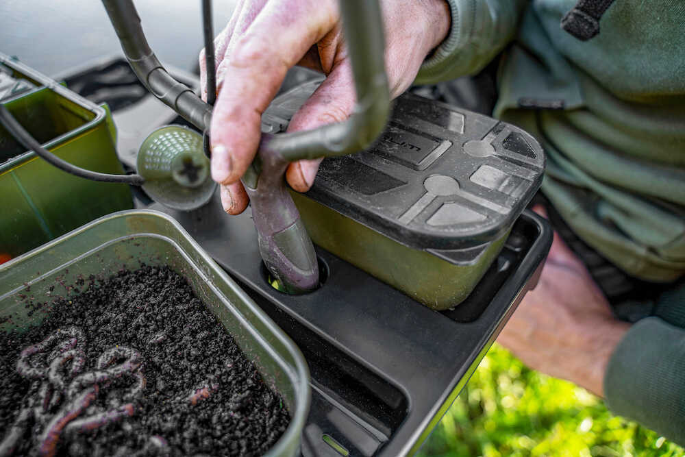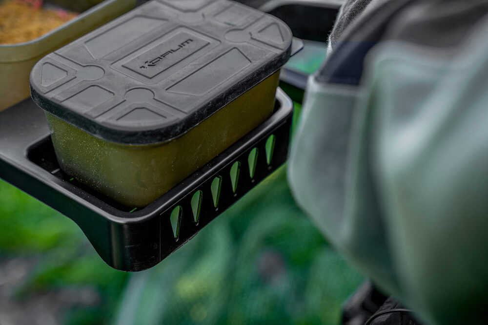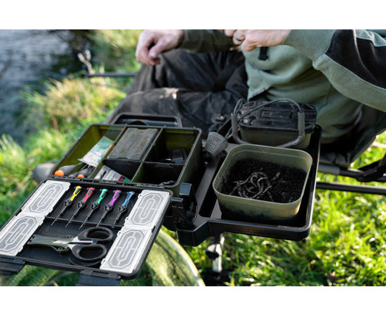 Es verfügt über Aussparungen für BLOX und Bait Tub Größen, einen Getränkehalter, eine Schleuder-Halterung und ein integriertes Rig Rack. Das Any Chair System verwandelt Stühle in eine vollständig modulare Ausrüstungseinheit.
