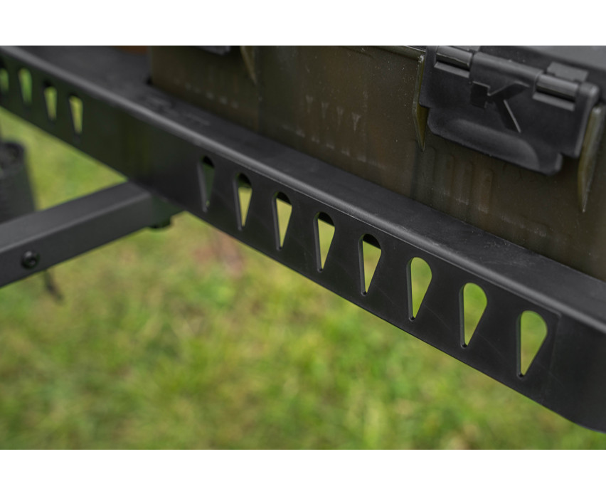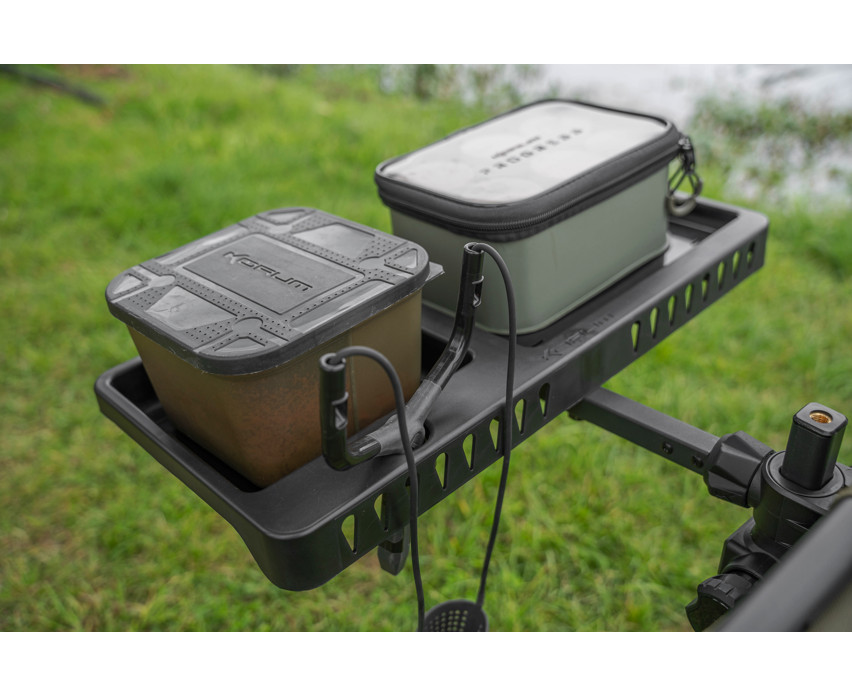 Dieser mit Blox und Bait Tub kompatible Beistelltisch ist der perfekte Begleiter für einen Angelausflug am Wasser. Die wichtigsten Dinge können Sie auf einem stabilen, verstellbaren Tisch aufbewahren, der immer griffbereit ist. Er verfügt über eine Halterungsöffnung für die Schleuder, eine Vertiefung für Ersatzgeräte und einen Befestigungspunkt für die Gripper Rest Rutenablage.