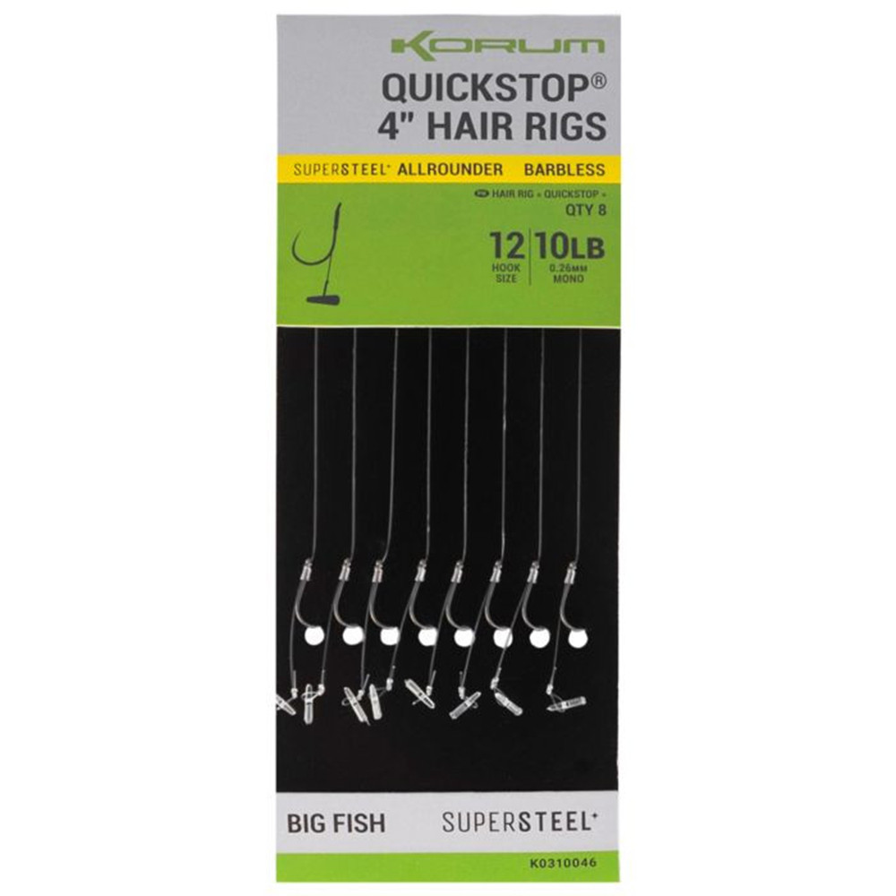 Korum 4" Big Fish Hair Rigs W Quickstops Size 10 Monofil-Vorfachhaken mit Öhr, widerhakenlos: