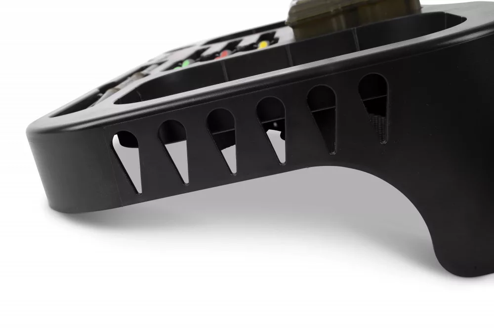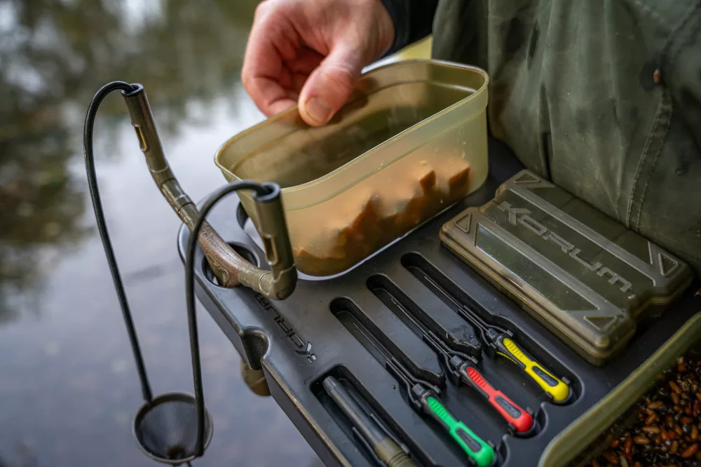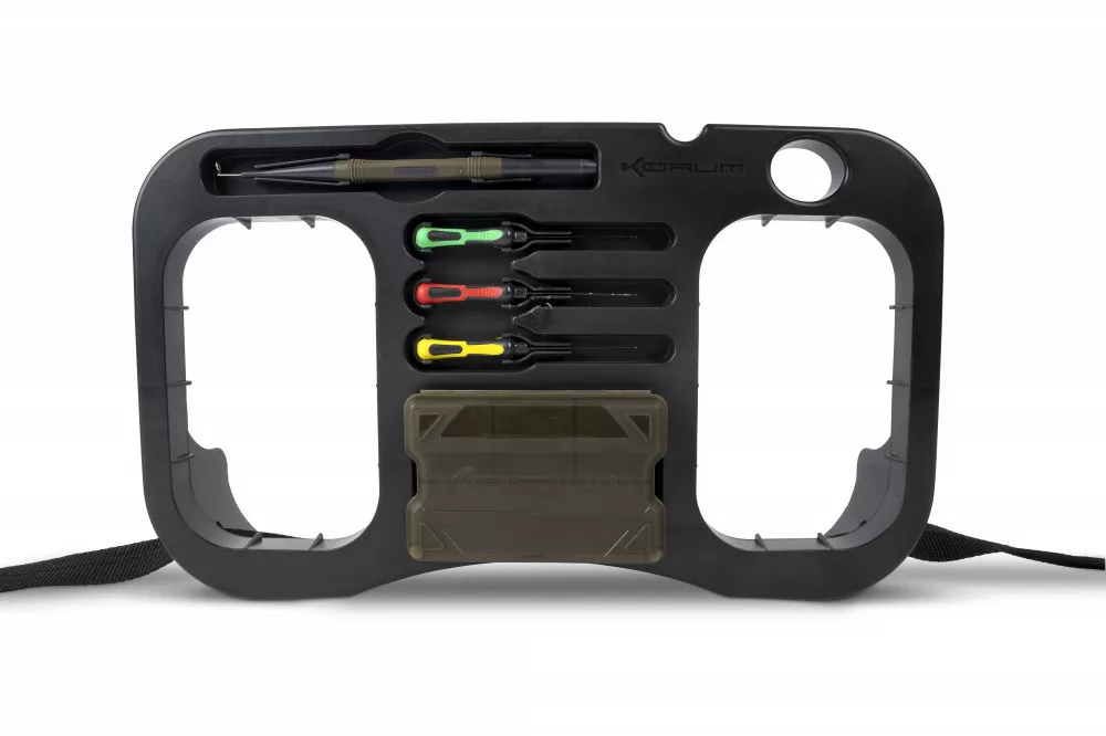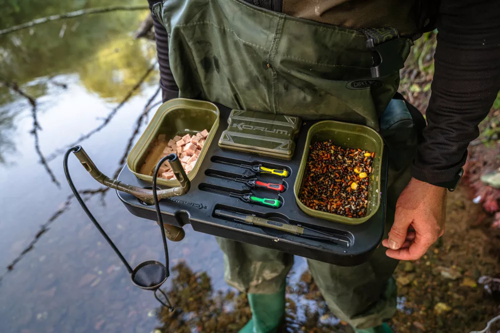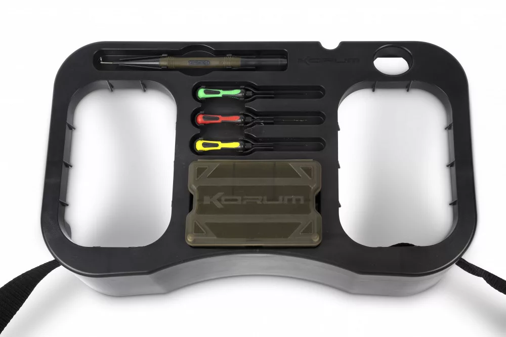 Die Korum Glide Trotting Tray ist eine innovative und vielseitige Zubehörablage, die ideal für das Karpfenangeln, insbesondere das Feederangeln, ist. Ob in flachen oder tieferen Gewässern, diese Ablage kann ein großartiger Begleiter für Ihren Fang sein. Diese clever durchdachte Ablage kann entweder an Ihrem Gürtel befestigt oder eigenständig an einem Erdspieß oder Stativ montiert werden. Egal für welche Lösung Sie sich entscheiden, das Ergebnis ist eine ausgezeichnete Aufbewahrungsmöglichkeit für Ausrüstung und Köder. Dank ihres Designs können kleine 0,6-Liter-Köderschalen sicher darin platziert werden, eine vollständig gefüllte Bits Blox Aufbewahrungsbox passt perfekt hinein, und es ist sogar Platz für Ersatzvorfächer. Ideal für die Posenfischerei, aber auch in anderen Stilen souverän einsetzbar. Mit Ködernadeln und Hakenlöser, mit verstellbarem Hüftgurt.