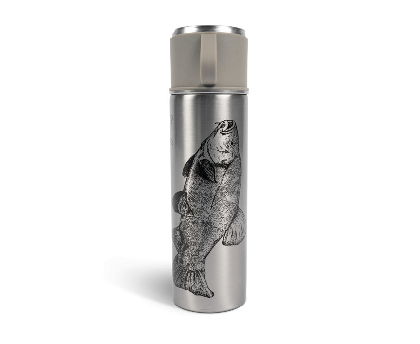 Die Korum Classic Serie steht heute für traditionelles Finesse-Angeln. Diese einzigartige 500ml Flasche ist mit der wunderschönen Arbeit des Angelkünstlers Steve Phillips verziert. Sie hält Getränke 12 Stunden lang warm oder kalt. Sie ist mit einem Druckknopf-Öffnungssystem ausgestattet und wird mit einem kompakten Trinkbecher geliefert.