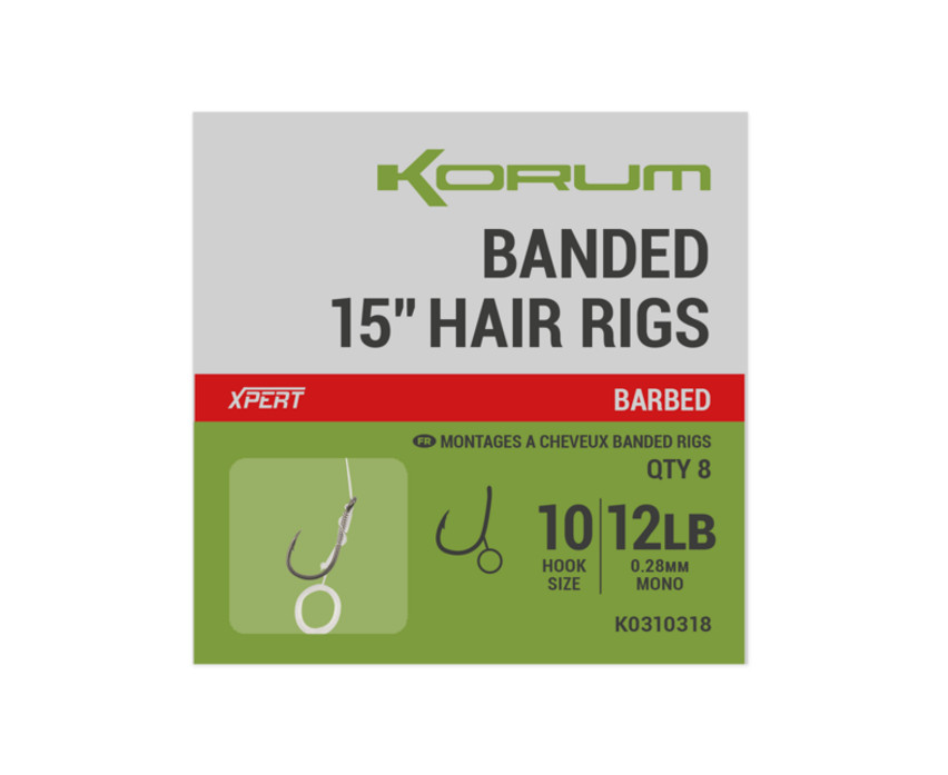 Bei der Entwicklung standen Stärke und Haltbarkeit im Vordergrund, was beim Angeln auf größere Fische unerlässlich ist. Das Korum Banded Hair Rig ist mit einer dickeren Vorfachschnur und einem stärkeren Haken ein perfektes Großfisch-Vorfach. Wir haben es mit einem speziellen, haltbaren Köderring ausgestattet, der die Qualität herkömmlicher Latex-Befestigungen übertrifft.
