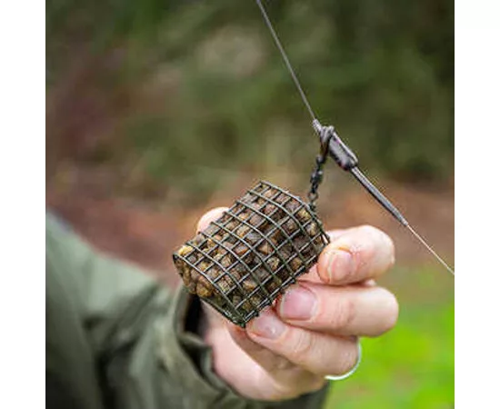 Hergestellt aus einem superstarken Metallgeflechtrahmen, der extrem langlebig ist und den Belastungen beim Angeln standhält. Das Metallgeflechtdesign gewährleistet die Stabilität und lange Lebensdauer des Korbes. Das flache, hydrodynamische Design ermöglicht es dem Korb, besser am Grund zu haften als herkömmliche Futterkörbe. Dies ist besonders nützlich beim Angeln in Fließgewässern, wo die Strömung den Korb leicht verschieben kann.