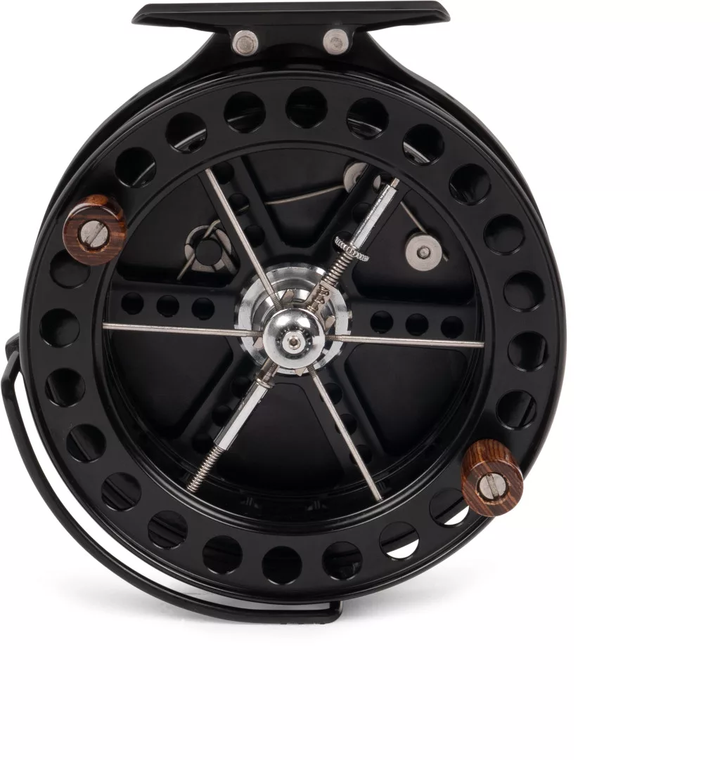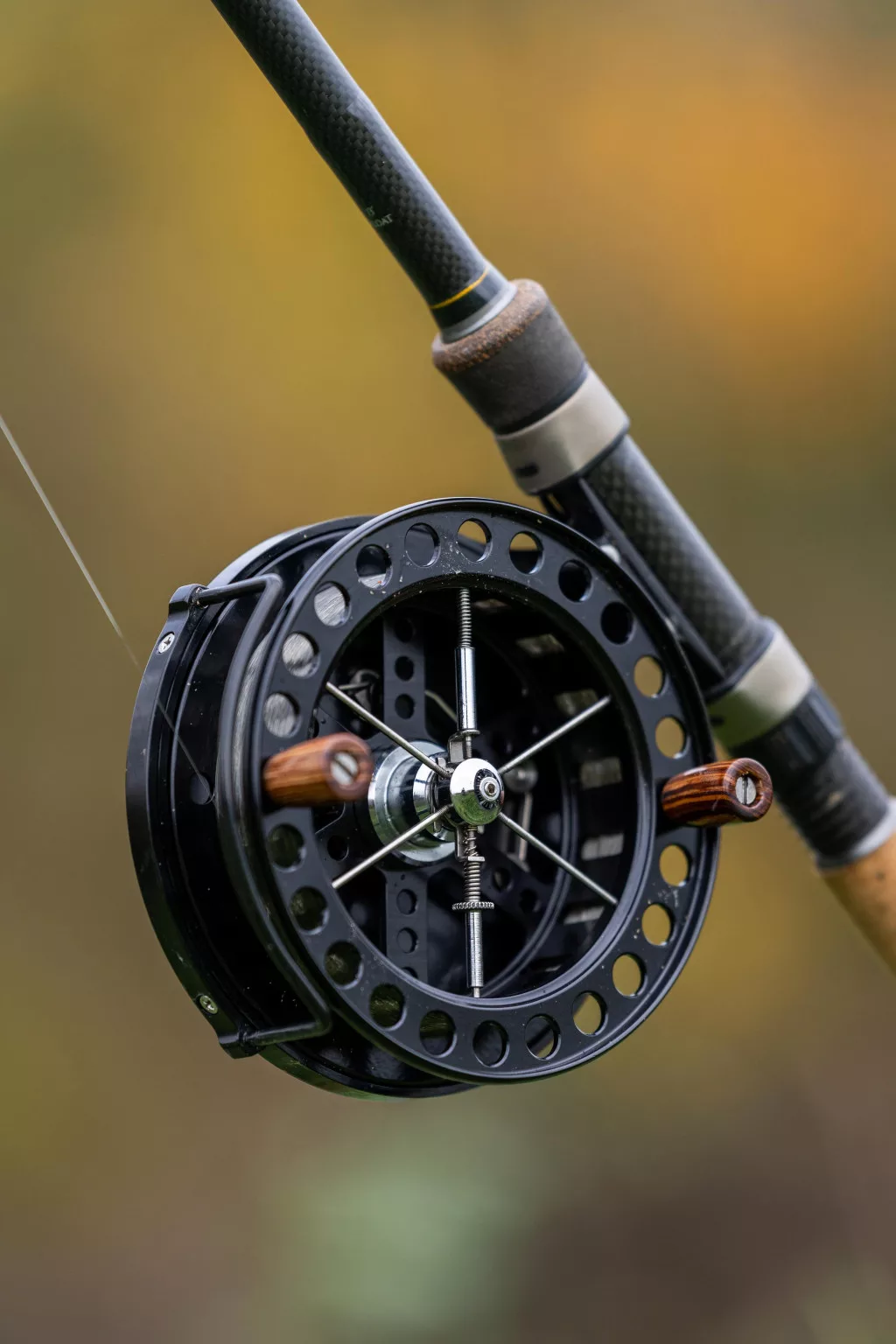Material und Design der Rolle dienen der Langlebigkeit: Sowohl Gehäuse als auch Spule sind aus hochwertigem Aluminium gefertigt. Die Metalloberflächen wurden eloxiert, was die Struktur widerstandsfähig gegen Umwelteinflüsse und Wasser macht. Das ästhetische Erscheinungsbild und die komfortable Handhabung werden durch elegante Griffe im Rosenholz-Stil ergänzt. Ein wichtiger Bestandteil der Konstruktion ist der verstellbare Schnurschutz, der ein unerwünschtes Ablaufen oder Verheddern der Schnur am Spulenrand verhindert.