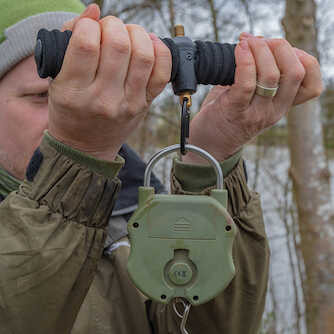 ermöglicht. Der Messgriff kann am Kescherstab befestigt werden. Ergänzt mit einem stabilen Karabiner