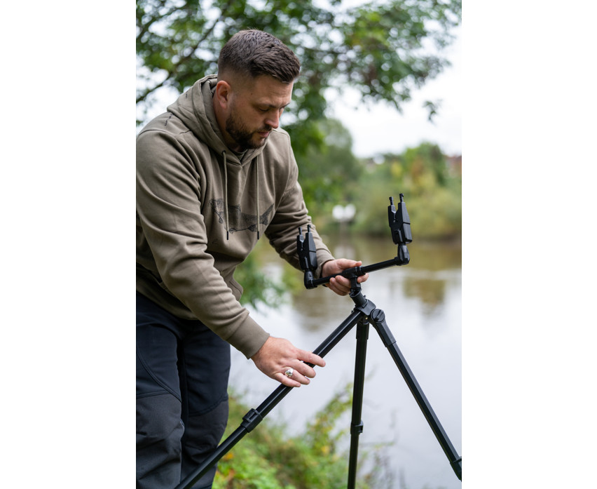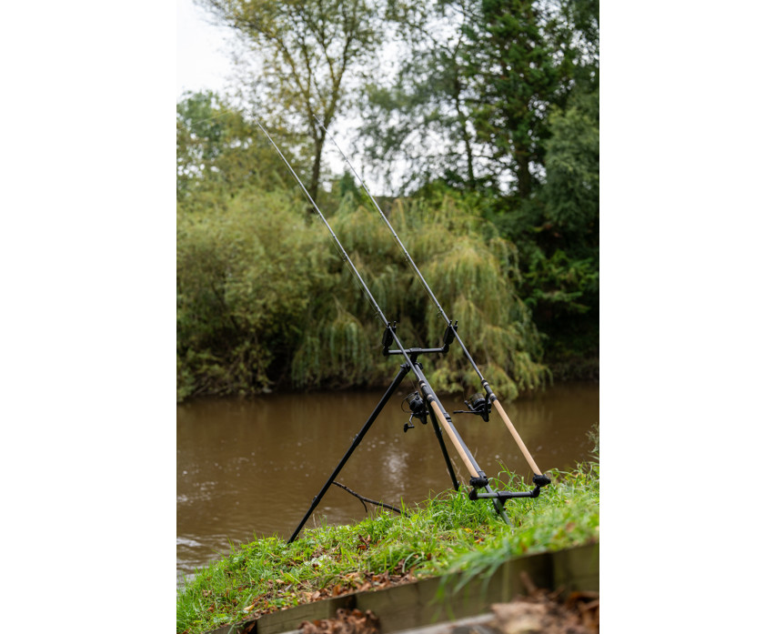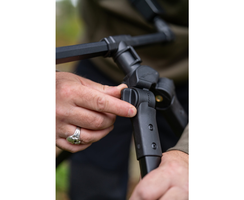 Korum Progress Compact River Tripod Dreibeinstativ. Die kompakte Version unseres legendären River Tripods, jetzt mit vorderem und hinterem Buzz Bar. Diese super stabile Konstruktion besteht aus verdrehsicherem Extrudat, das eine kippsichere Auflage für Ruten und Rollen garantiert. Der Rahmen kann während des Gebrauchs ausgezogen werden, lässt sich aber dank der doppelten Cam Lock Verschlüsse leicht zusammenpacken, wodurch er beim Transport viel weniger Platz einnimmt. Die dicken Buzz Bars sind unglaublich stark und verfügen über ein hervorragendes gewindeloses Schnellverschluss-System, sodass sie beim Auf- und Abbau nicht ein- und ausgeschraubt werden müssen. Drücken Sie einfach den Auslöser des Cam Lock Verschlusses, setzen Sie die Elemente ein und schon kann das Angeln beginnen! Der hintere Buzz Bar kann in verschiedene Neigungspositionen eingestellt werden.
