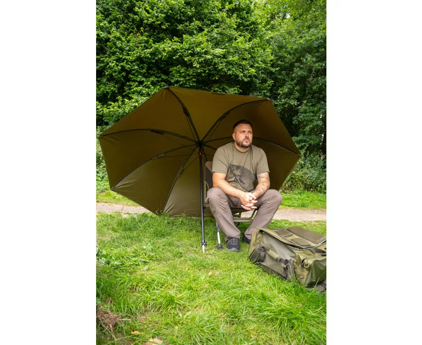 Der Korum Classic Brolly 2,2 Meter ist eine moderne Neuinterpretation des klassischen Brolly-Stils, der dem Angler zuverlässigen Schutz bei wechselhaften Wetterbedingungen bietet. Die 115 cm (45 Zoll) große Kuppel bietet ausreichend Schutz und ist dank ihrer kompakten Größe leicht zu transportieren und schnell aufzubauen. Dieser Schirm ist die ideale Wahl für kürzere Angeltouren oder in Situationen, in denen schnelle Reaktion und stabiler Schutz von größter Bedeutung sind.