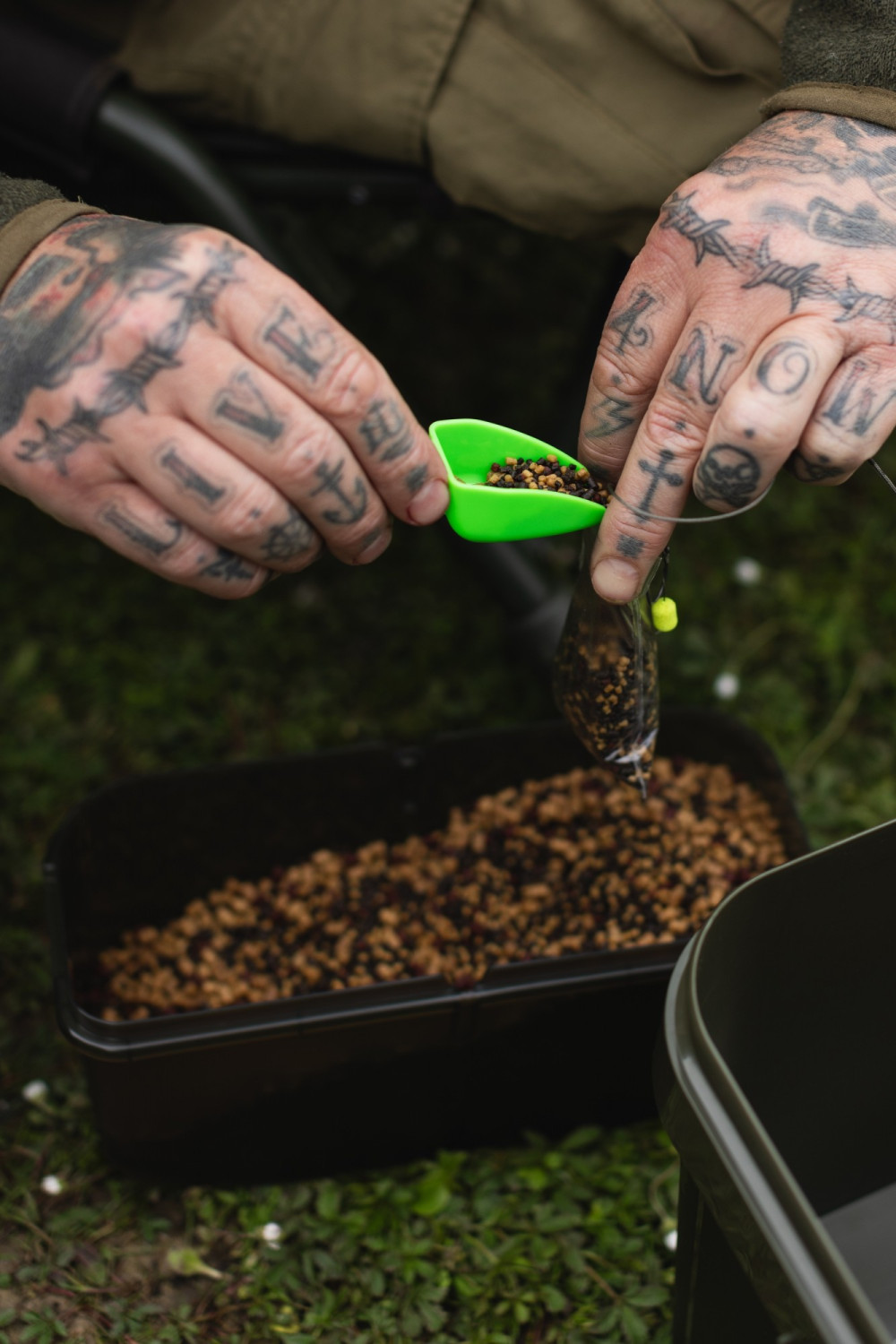 Schließlich ist all dies in einem 10-Liter-Korda-Eimer mit dunklem Camo-Muster organisiert, und da es sich um ein modulares System handelt, passen alle Komponenten effizient und präzise in den Eimer für einfachen Transport und Lagerung.