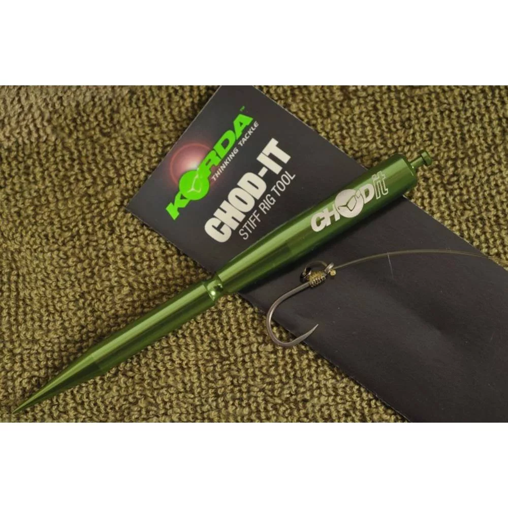 Das Korda Chod-It Tool ist ein anspruchsvoll ausgeführtes, längliches, stiftförmiges Werkzeug aus eloxiertem Aluminium, mit dem man die heutzutage so beliebten Chod- oder Stiff-Rigs herstellen kann.