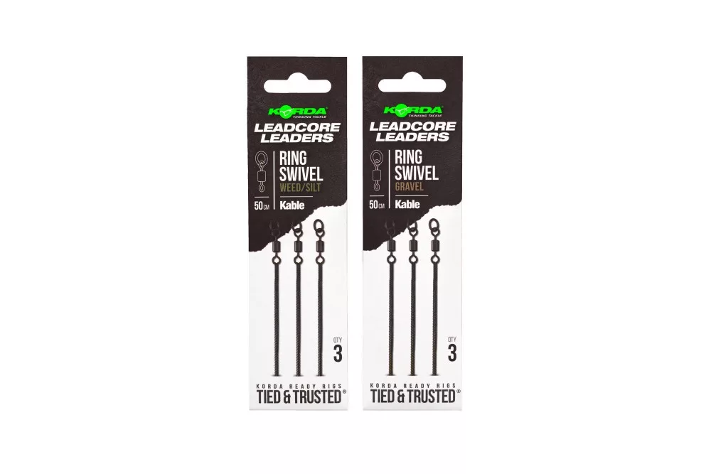 Korda Kable Leadcore Leader Ring Swivel Gravel Bojlis Rig 50cm 3 Stk.