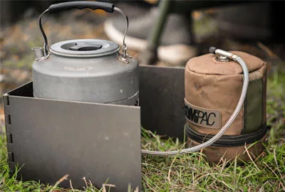 Die Korda Compac Gas Canister Jacket ist nichts anderes als eine isolierte Tasche für 500er Gasflaschen. Sie verfügt über Taschen für Löffel und Feuerzeug, damit diese immer griffbereit sind.