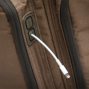 1. Vier geformte Kabelausgänge ermöglichen die Aufbewahrung des Netzteils in den Taschen, während die Ladegeräte an der Außenseite der Tasche aufbewahrt werden können.