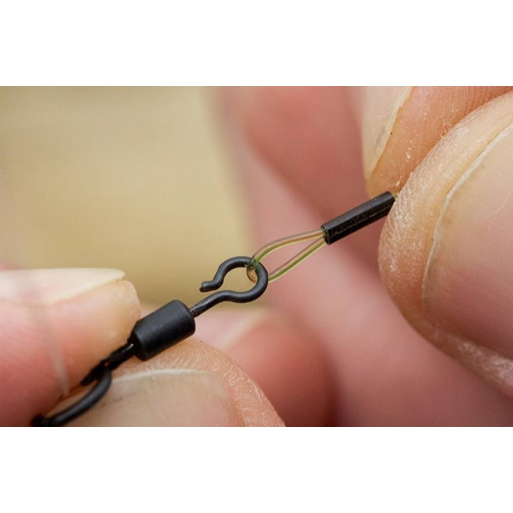 Dieser spezielle Schnellverschluss wurde so konzipiert, dass er perfekt für die Herstellung von CHOD-Montagen ist. Die vorbereitete Schlaufe muss nur wie bei einem herkömmlichen Clip aufgeschoben werden, und Sie können sicher sein, dass sie nicht abrutscht und das Vorfach sich frei bewegen kann. Der Clip ist mit einer PTFE-Beschichtung versehen, die verhindert, dass Licht darauf reflektiert wird, sodass er für Karpfen perfekt verborgen bleibt.