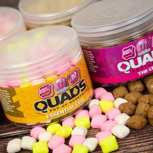 Die Mainline 'QUADS' ist ein neues Konzept innerhalb des breiten Angebots an Hakenködern. Ihre quadratische Form ist für Fische ungewöhnlich und macht es ihnen schwerer, sie auszuspucken.