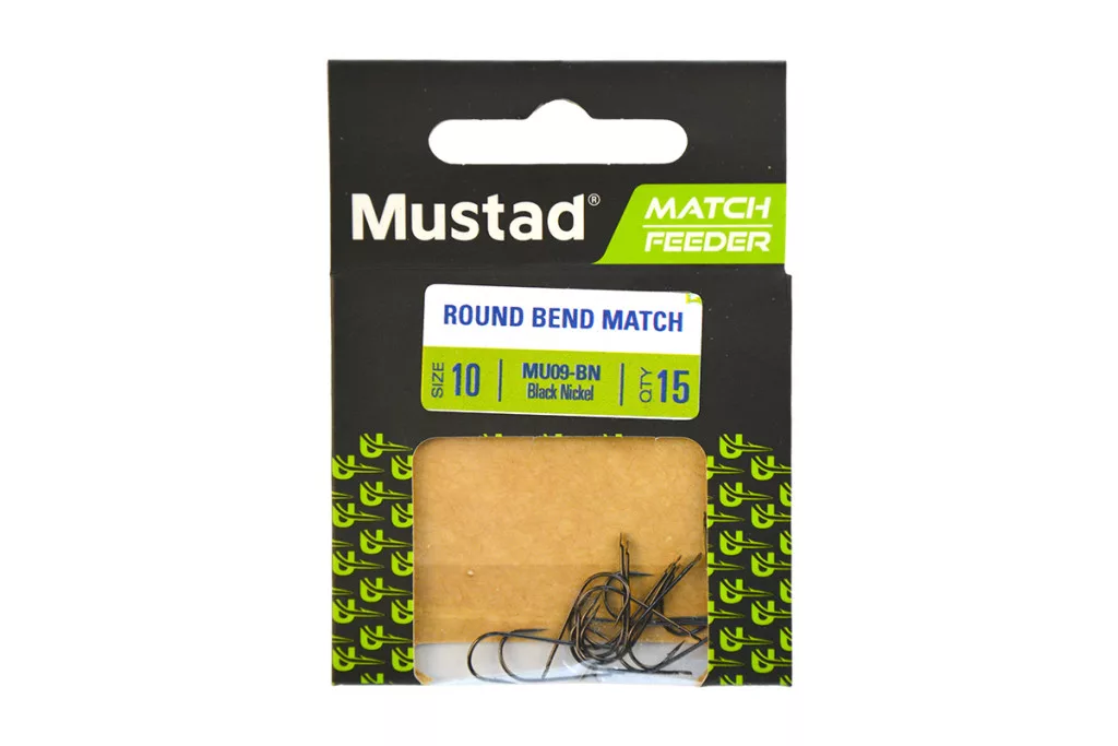 Mustad Match Feeder Round Bend Match 10 mit Plättchen, Haken mit Widerhaken 15 Stk. detaillierte Beschreibung