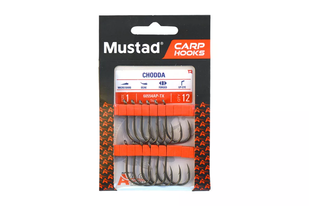 Mustad Carp Chodda 8 Öhrhaken mit Widerhaken für Boilie 12 Stk.