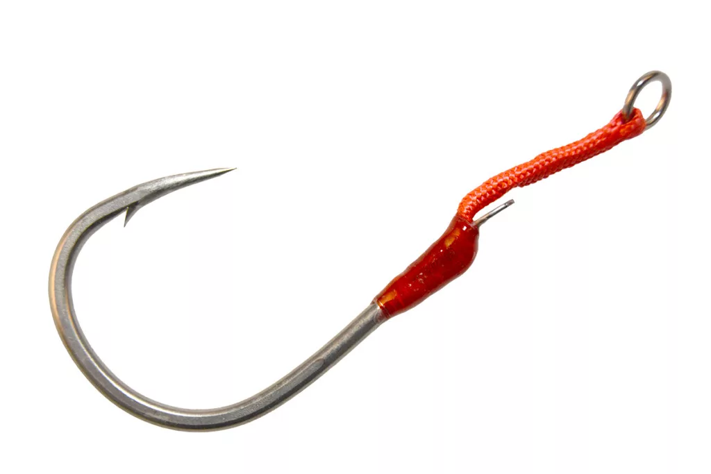 Mustad Hoodlum Speed Single 10/0 Widerhakenhaken mit Platte und Assist Rig 2 Stück