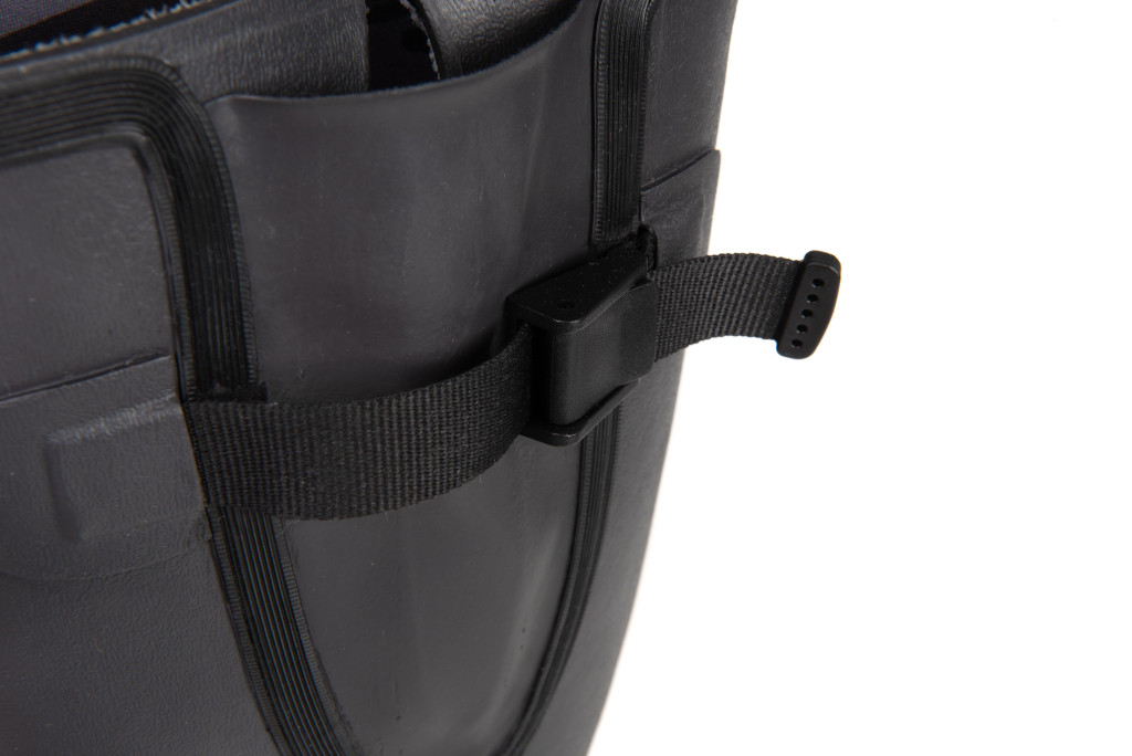 Der verstellbare Riemen und die Schnalle ermöglichen eine individuelle Passform, sodass der Stiefel den Fuß stabil und bequem hält. Die wasserdichte Verbindung verhindert, dass Wasser in den Stiefel eindringt, sodass die Füße auch auf tieferem, nassem Boden oder bei Regen trocken bleiben. Die Innen- und Außensohle bestehen ebenfalls aus synthetischem Material, das für ausreichenden Halt und Abriebfestigkeit sorgt.