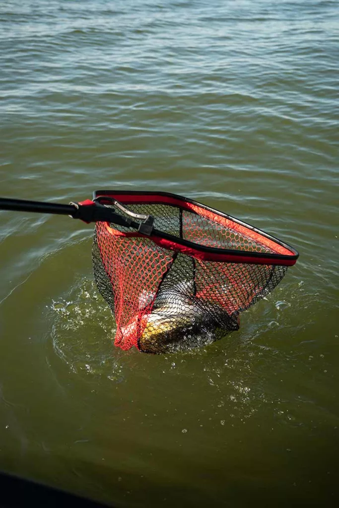 Der Fox Rage Speed Flow Compact Net ist eines der praktischsten und zuverlässigsten Werkzeuge für das Raubfischangeln. Ob Sie vom Ufer oder vom Boot aus angeln, dieser Teleskop-Kescher wird Ihr hervorragender Begleiter in jeder Situation sein. Dank seines speziellen schwimmenden Designs müssen Sie sich keine Sorgen machen, dass er ins Wasser fällt, so ist Ihre Ausrüstung auch bei intensivem Gebrauch sicher. Das gummierte, fischfreundliche Netz schont die gefangenen Fische, reduziert das Verletzungsrisiko, während das schwarz-rote Speed Flow Design ein modernes, aber klares Erscheinungsbild bietet.