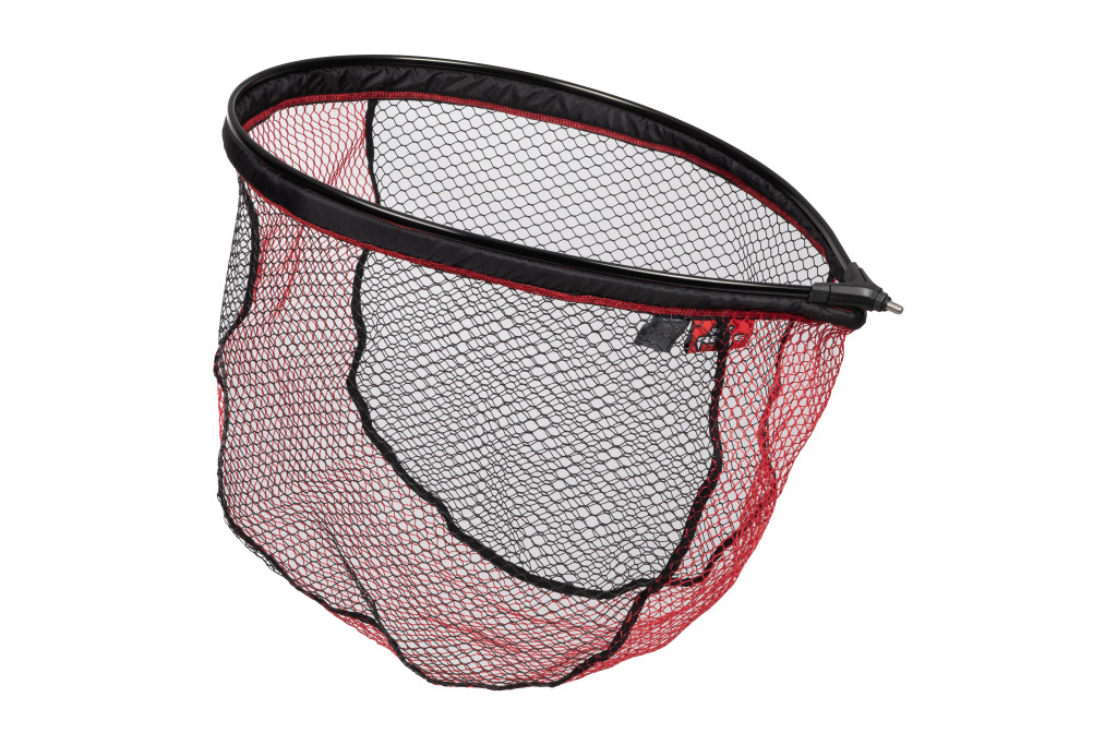 Der Kescherkopf besteht aus einem schwarz-roten, fischfreundlichen gummierten Netz, das kein Wasser aufnimmt, nicht riecht und leicht sauber zu halten ist. Die gummierte Beschichtung verhindert das Verheddern von Haken, wodurch die Handhabung der Fische schneller und sicherer wird. Das schwimmende Design ist besonders vorteilhaft beim Boots- oder Uferangeln, da der Kescherkopf nicht untergeht und somit immer griffbereit ist, wenn er benötigt wird.