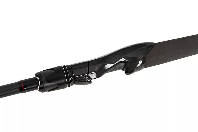 Der Blank der Prism X Rute besteht aus 24/30er Qualitätskarbon, das nicht nur leicht, sondern auch hervorragende Haltbarkeit bietet. Das Carbonmaterial sorgt für schnelle Reaktionszeiten, sodass selbst feinste Bisse präzise wahrgenommen werden können, während die Rute unglaubliche Kraft für den Anhieb und Drill liefert. Der stilvolle graue EVA-Griffbezug bietet einen bequemen Halt, der auch an langen Angeltagen für komfortable Nutzung sorgt.