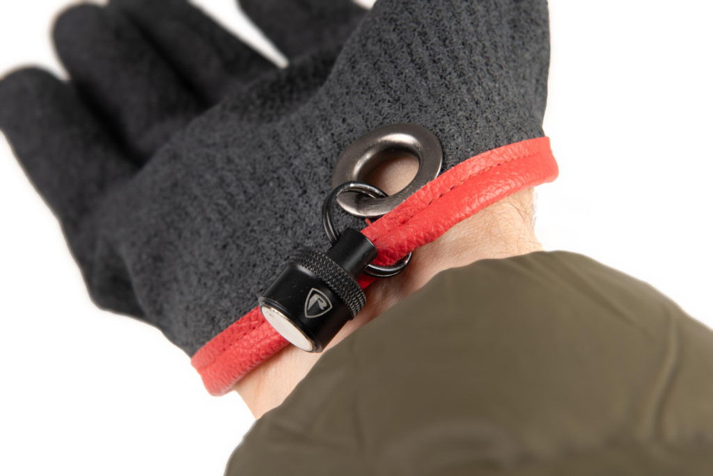 Die schnellen Reaktionen während des Angelns werden durch das im Lieferumfang enthaltene spezielle Befestigungsset unterstützt, das einen Karabiner und einen 5 kg starken Magneten enthält. Mithilfe dieser kann der Handschuh einfach und sicher an der Kleidung oder Tasche befestigt werden, sodass er immer griffbereit ist, wenn der Fisch in Greifweite kommt. Dieses einseitige, linkshändige Modell ist ein unverzichtbares Accessoire für alle, die sich den Unterwasser-Raubfischen sicher und ohne Komforteinbußen stellen möchten.