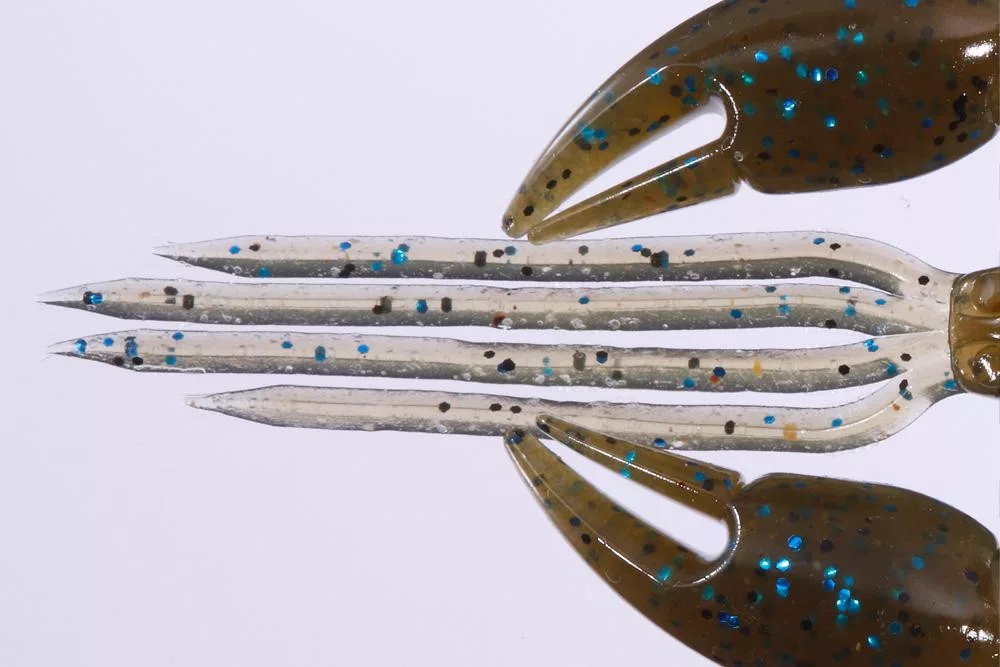 Die Entwicklung der perfekten Krebsimitation (claw bait) begann mit einer gründlichen Untersuchung der Bewegungen früherer Krebs- und 'Hog'-Typen (hog-type) von Gummiködern. Wiederholte Bewegungstests und reale Angeln in einem Testbecken mit superklarem Wasser zeigten, dass sich die Bisse dann konzentrierten, wenn der Köder 'lebensecht bewegte'. Diejenigen, die beim Absinken verlockend wirkten, erhielten den Biss beim Absinken, während diejenigen, die ihre wahre Fähigkeit bei der späteren Bewegung (lure) zeigten, dann den Biss erhielten. Wenn der Köder jedoch während der gesamten Bewegungsabfolge – vom Auftreffen im Wasser bis zum Einholen – seine Anziehungskraft verliert, bedeutet dies eine verpasste Bissgelegenheit. Der erste Gummiköder von OSP, der Do-Live Claw, 'ermöglicht es, dass alle Teile effektiv wirken und den Barsch (bass) kontinuierlich reizen'. Die einzigartigen Bewegungen der einzelnen Teile erzeugen zusammen eine besondere Anziehungskraft, die die Anzahl der Bisse beim Absinken dramatisch erhöht. Unmittelbar nach dem Auftreffen auf den Grund fallen die Scheren (pincers) und Barteln (barbels) langsam im Verhältnis zum Körper zusammen, wodurch eine verzögerte Bewegung (delayed action) entsteht, die den Barsch gefangen nimmt. Auch bei den verschiedenen späteren Bewegungen zieht immer ein Teil des Köders den Barsch an, ohne jemals seine Lebensechtheit zu verlieren. Erleben Sie die nahezu naturgetreue Bewegung und die unbestreitbar kräftigen Bisse.