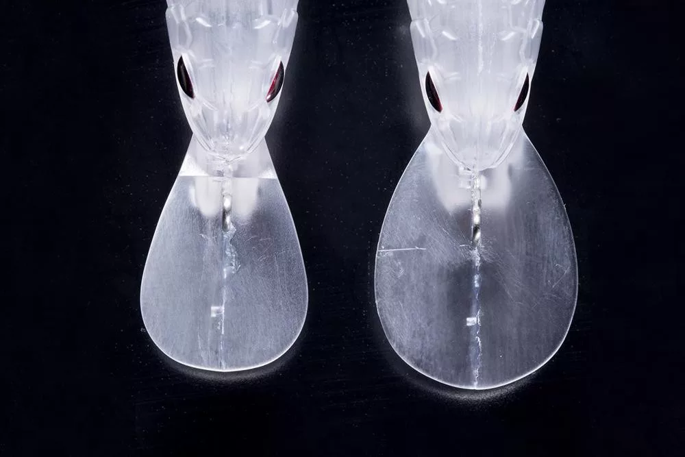 Die breite Tauchschaufel mit ihrer großen Wasseraufnahme verhindert, dass der Wobbler 'aus dem Rhythmus gerät', selbst bei schwacher Strömung. Gleichzeitig ist der Winkel der Tauchschaufel flach, um ein 'Sieben' und unnötiges Auf- und Abspringen bei starker Strömung zu vermeiden, wodurch der Köder das Wasser 'bewältigen' und seine hochwertige Schwimmbewegung beibehalten kann.