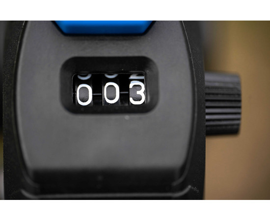 Ein Muss für jeden Wettkampfangler, der einfach die Anzahl der gefangenen Fische zählen oder das Gewicht addieren möchte, um die Überschreitung der Fanglimits zu vermeiden. Die Bedienung ist denkbar einfach: Durch Drücken der großen Taste oben wird gezählt, während das Display durch Drehen des Rades an der Seite des Geräts zurückgesetzt werden kann. Der Zähler wird mit einem Offbox-Gelenk geliefert, einschließlich der Einsätze, so dass er direkt an die Beine praktisch aller auf dem Markt erhältlichen Wettkampfkästen und Fußstützen passt.