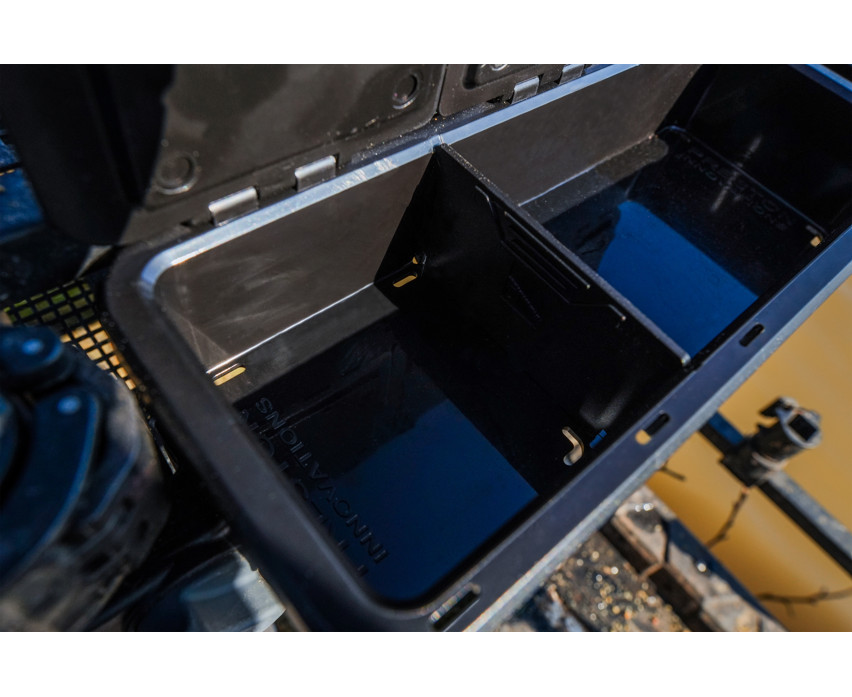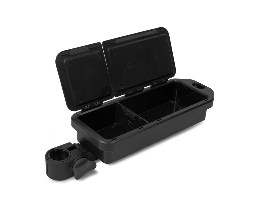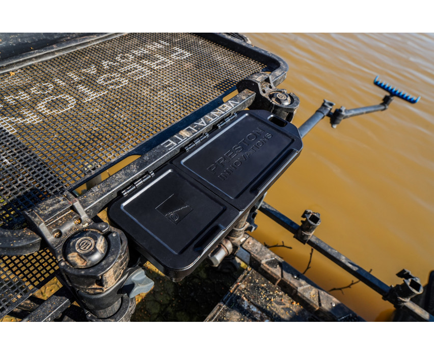 Eine kleine, kompakte Ablage mit wasserdichtem Deckel, die zur Aufbewahrung von kleineren Accessoires, Getränken und sogar Mobiltelefonen geeignet ist. Einer der Hauptaspekte bei der Entwicklung war, dass sie perfekt zwischen die beiden Beine einer Angelkiste und eine Venta-Lite Seitenablage passt.