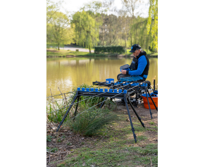 Mit Hilfe der vier Teleskopbeine steht der Halter auf jedem Gelände sicher, sei es unebener oder weicher Boden. Die verschiebbare Schaumstoffeinlage schützt die Steckruten vor Stößen, sodass sie auch bei Wettkämpfen ein zuverlässiger Begleiter sind. Das 8-teilige Design ermöglicht die gleichzeitige Unterbringung von bis zu 10 Steckruten-Top-Sets, was es ideal für Wettkampfangler macht.