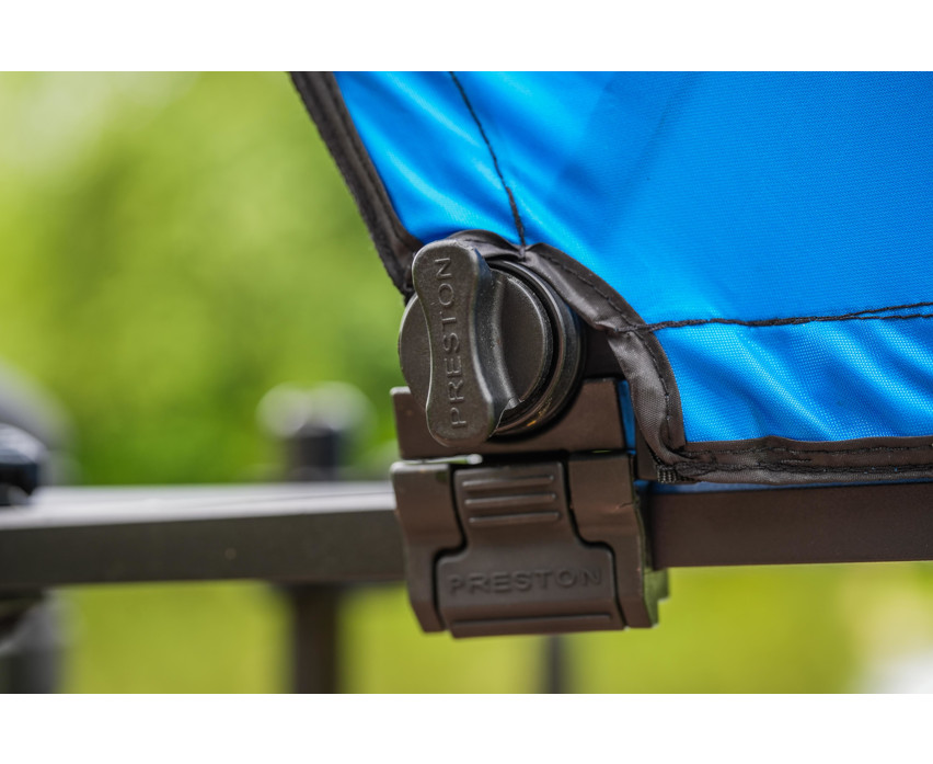 Der Boden des Faches besteht aus einer Ventamesh-Lochplatte, die für eine gute Belüftung der Köder und Futtermittel sorgt, insbesondere bei warmem Wetter. Zudem fungiert es als effektives Wasserablaufsystem, sodass man sich auch an regnerischen Tagen keine Sorgen um durchnässte Ausrüstung machen muss. Der hellfarbige, abnehmbare Schirm hilft, die Sonnenwärme zu reflektieren und bietet gleichzeitig Schutz vor Regen und Wind. Das verschiebbare Sicherheits-Befestigungsgelenk ermöglicht eine schnelle und stabile Montage, während das beinlose Design die Positionierung auch auf engstem Raum erleichtert.