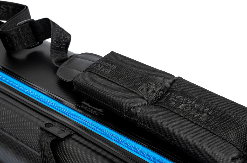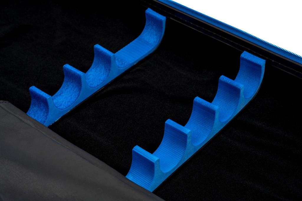 Die Innenkonstruktion der Rutenhülle dient maximaler Organisation: Mithilfe von beweglichen Trennwänden kann der Innenraum an die Größe der Ruten angepasst werden, während sichere Klettverschlussbänder die Ausrüstung stabil fixieren. Das tiefe Staufach bietet ausreichend Platz für Rollen und schützt diese vor unerwünschten Beschädigungen und Kratzern. Der Transport der Ausrüstung wird durch den serienmäßigen sicheren Tragegriff und den abnehmbaren, gepolsterten Schultergurt bequem gestaltet, sei es bei längeren Fußwegen oder beim Einladen ins Fahrzeug.