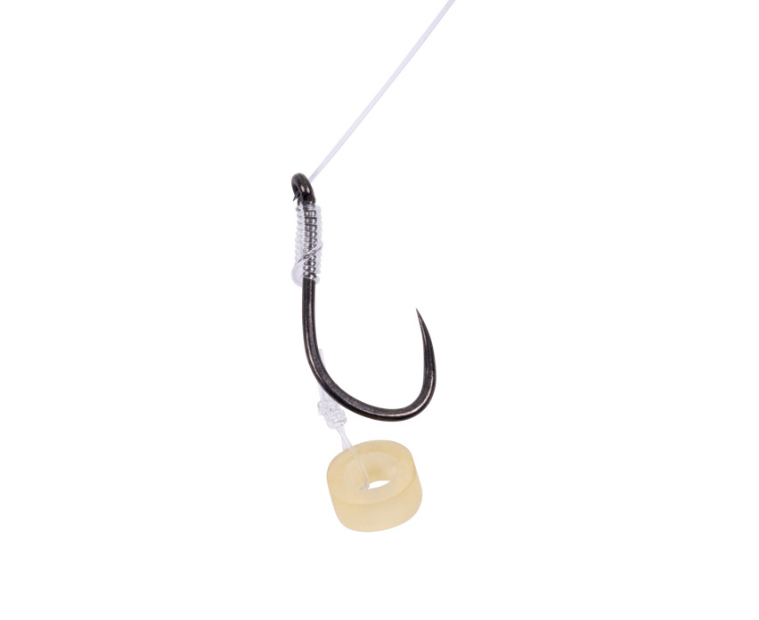 Extrem starke, zuverlässige Haken wurden am Ende unserer Reflo Power Schnur befestigt. An den vorgebundenen KKH-B Mag Vorfächern auf den Vorfachhaltern haben wir die Haken mit knotenfreien Bindungen befestigt und für die Beköderung einen strapazierfähigen Silikonring verwendet. Eine ausgezeichnete Wahl, wenn Sie mit harten Pellets unterschiedlicher Größe ködern möchten.