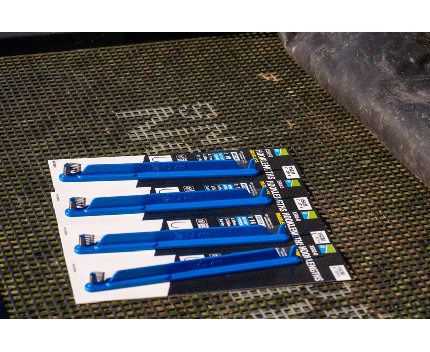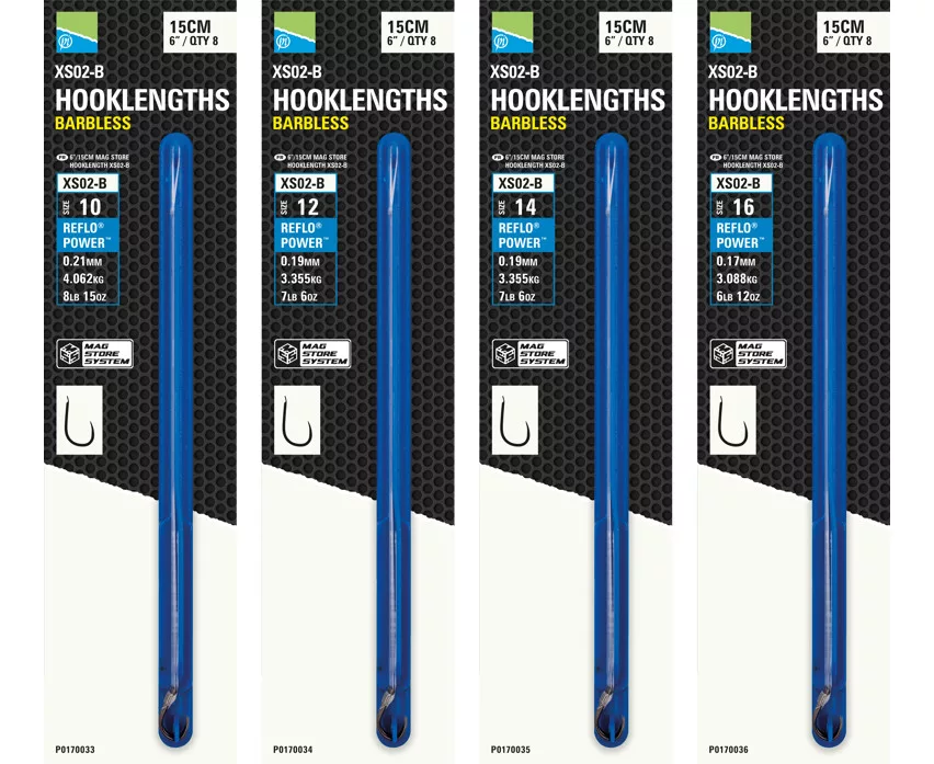Packungsinhalt:Preston XS02-B 15cm 12-Plättchen, Widerhakenloser vorgebundener Haken 8 Stk.