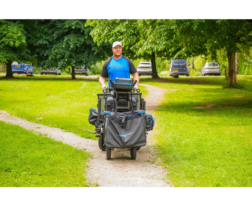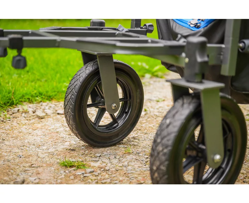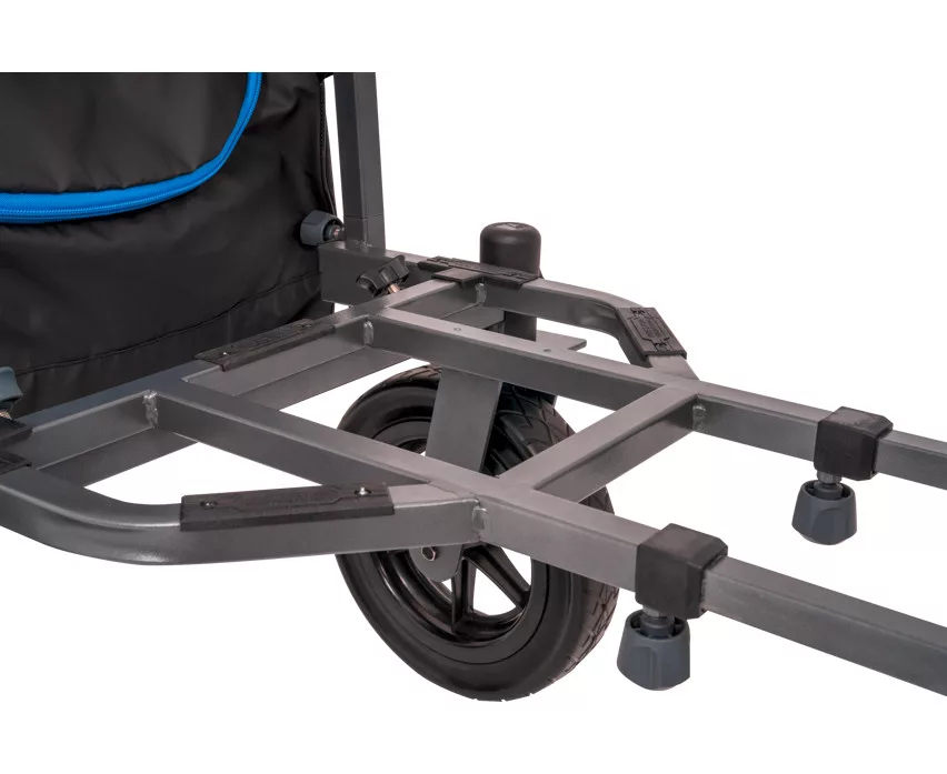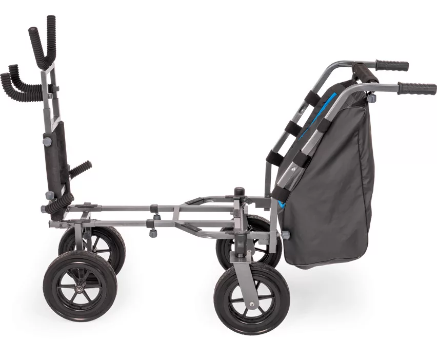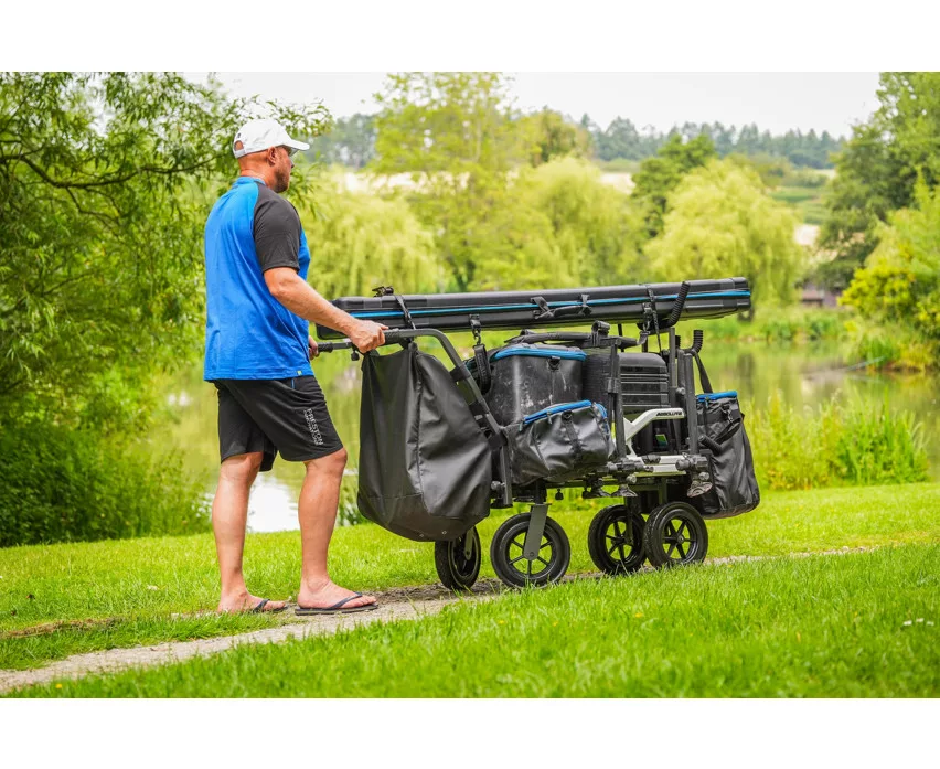 Das robuste und dennoch leicht zu handhabende Design der Transportkarre macht sie zur idealen Wahl für jede Angeltour, sei es am Seeufer oder bei schwierigeren, geländegängigen Zugängen. Die vier großen Geländerräder sorgen für Stabilität und eine reibungslose Fahrt, während die um 360 Grad drehbaren Hinterachsen eine präzise Steuerung auch auf engem Raum ermöglichen. Die klappbare Konstruktion der Transportkarre ist besonders praktisch, da sie im Kofferraum weniger Platz einnimmt als ihr Vorgänger, was den Transport und die Lagerung erleichtert.