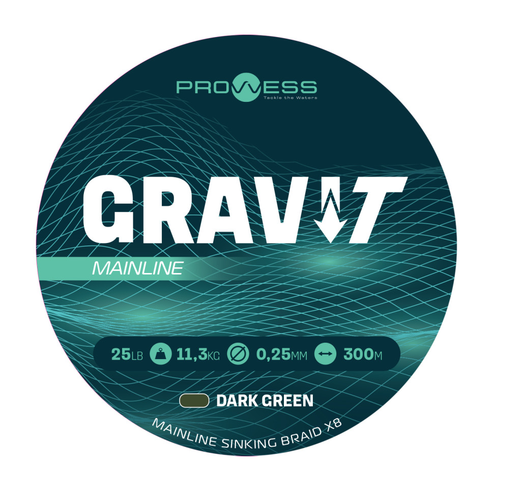 Prowess Gravi-T Mainline Braid X8 Dunkelgrün Sinkend 0,25mm 300m Geflochtene Hauptschnur