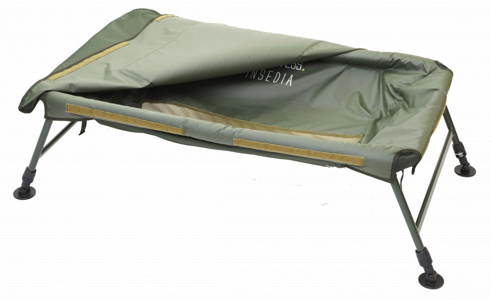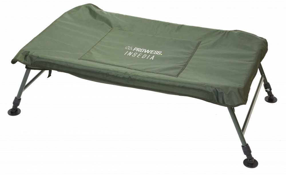 Die Prowess INSEDIA ist eine High-End-Karpfen-Abhakmatte, die aus extrem starken und haltbaren Materialien gefertigt ist. Die Wasserabläufe an der Abhakmatte ermöglichen eine reichliche Befeuchtung des Fisches, ohne dass das Wasser bei Bewegung des Fisches herausspritzt. Sie ist sehr steif, lässt sich aber dennoch leicht zusammenklappen, quasi wie ein Koffer. Die vier verstellbaren Beine ermöglichen einen stabilen Aufbau auf jedem Gelände. Eine weitere positive Eigenschaft dieser großartigen Abhakmatte ist die Abdeckplane, die den "Fang" verdeckt, während wir uns anderen Dingen zuwenden, ein gutes Beispiel hierfür ist das Holen des zum Befeuchten benötigten Wassers.